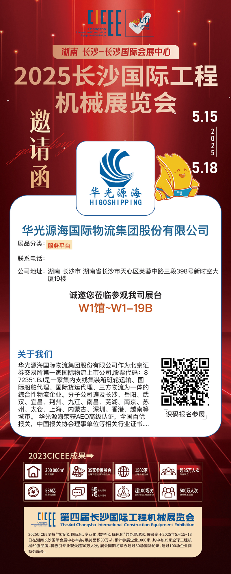 华光源海作为北京证券交易所第一家国际物流上市公司,专注于国际物流行业近二十年,提供包括海运整箱、危险品海运、杂项危险物品、码头服务、报关报检、项目物流、海铁联运、空运出口等一站式服务 。我们诚挚邀请您莅临华光源海展位【W1-19B】,我们期待与更多有识之士建立合作关系,共同探索物流行业的创新之路。同时,我们也将分享华光源海对未来物流市场趋势的洞察与展望,与您一同见证物流行业的蓬勃发展。