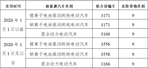 温馨提示:2026年1月1日起,新版《国际海运危险货物规则》对新能源汽车分类及编号有所调整,请相关企业做好准备。