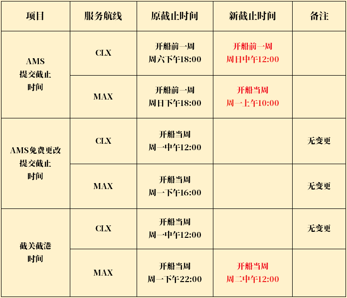 公告特别提醒,请广大客户及代理同步更新内部相关操作流程,务必在调整后的新截止时间前,提交完整、准确的AMS信息。
