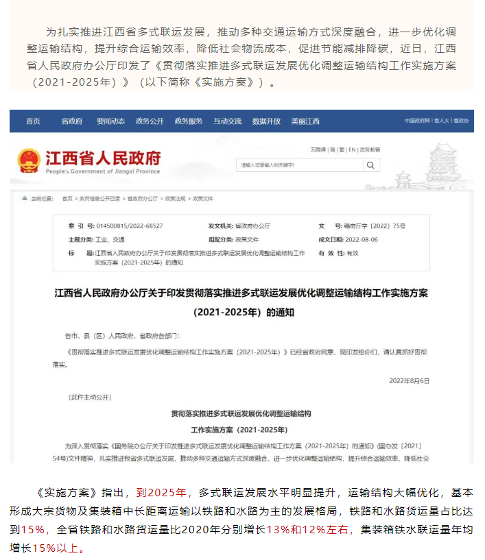 江西推进多式联运发展!2025年铁路和水路货运量占比达到15%