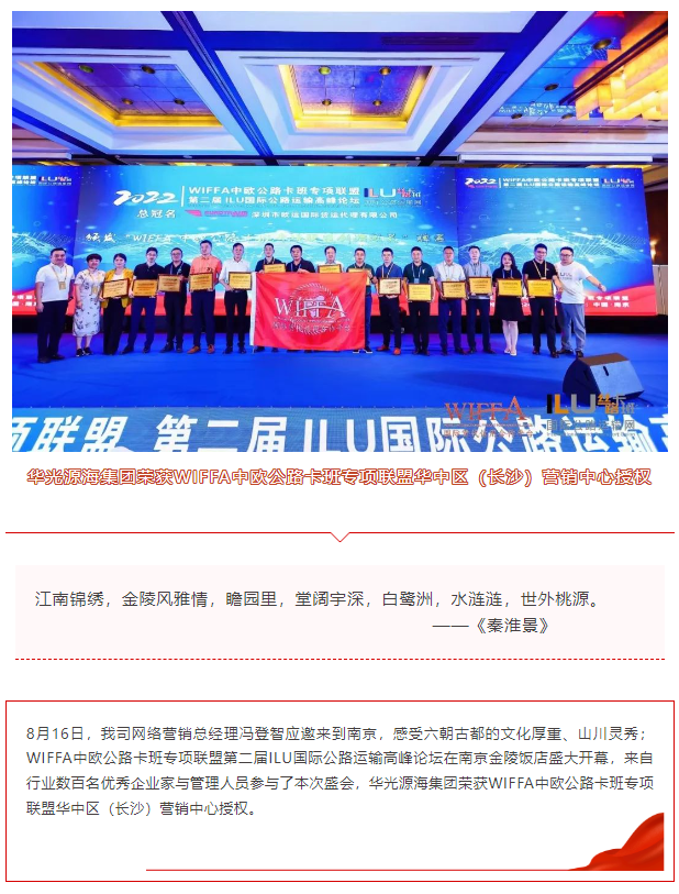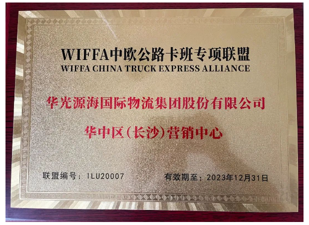 喜讯:华光源海集团荣获WIFFA中欧公路卡班专项联盟华中区(长沙)营销中心授权