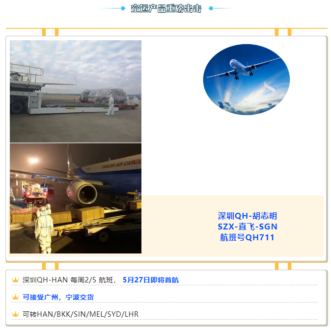 5.27即将首航 | 华光源海新增深圳QH-胡志明国际货运航线,货力全开!